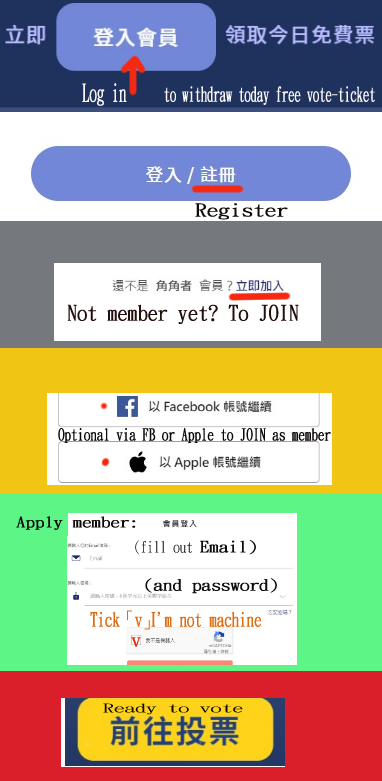 I did not find English-edition from the website BUT you could learn to join member and log in easily. Just follow-up the left color-chart :【會員-Member】/hui-yuan/【投票-Vote】/tou-piao/。